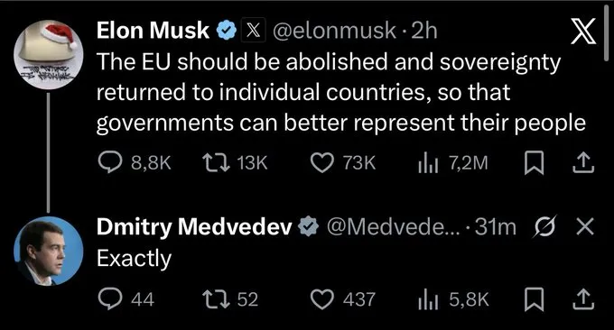Musk has being leveraging his significant following to amplify right-wing content and ideologies as well as right-wing political parties such as Reform UK and Alternative für Deutschland (AfD) German, while publicly calling for the destruction of the European Union.